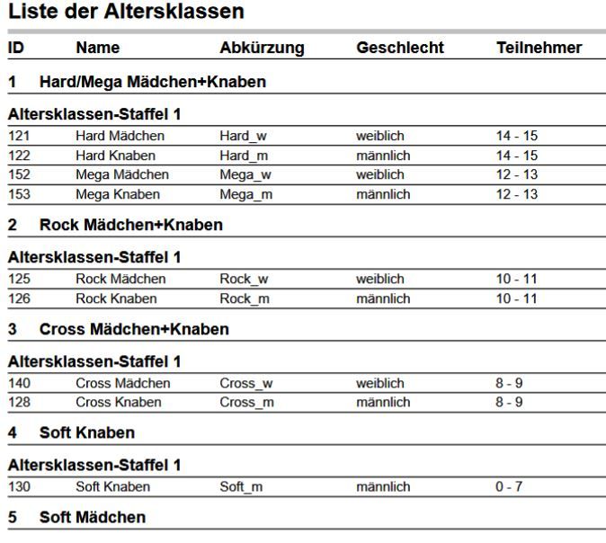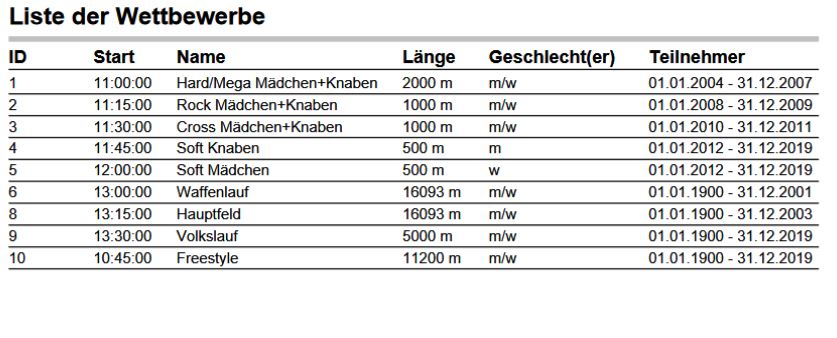 -Listen (Listen der Angemeldeten, Teamlisten, Vereinslisten usw)
